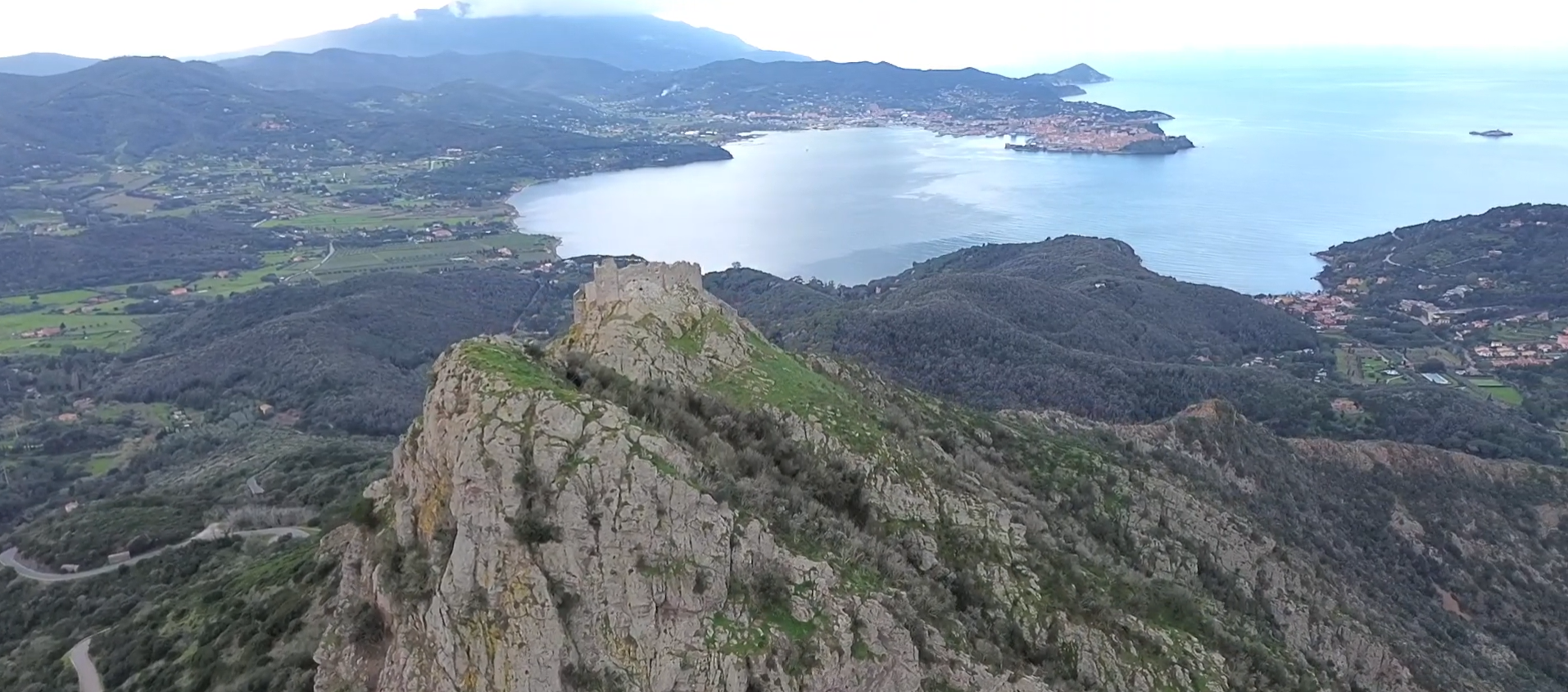 Riprese aeree dall’Isola d’Elba verso le isole di Montecristo e Pianosa e della fortezza del Volterraio.