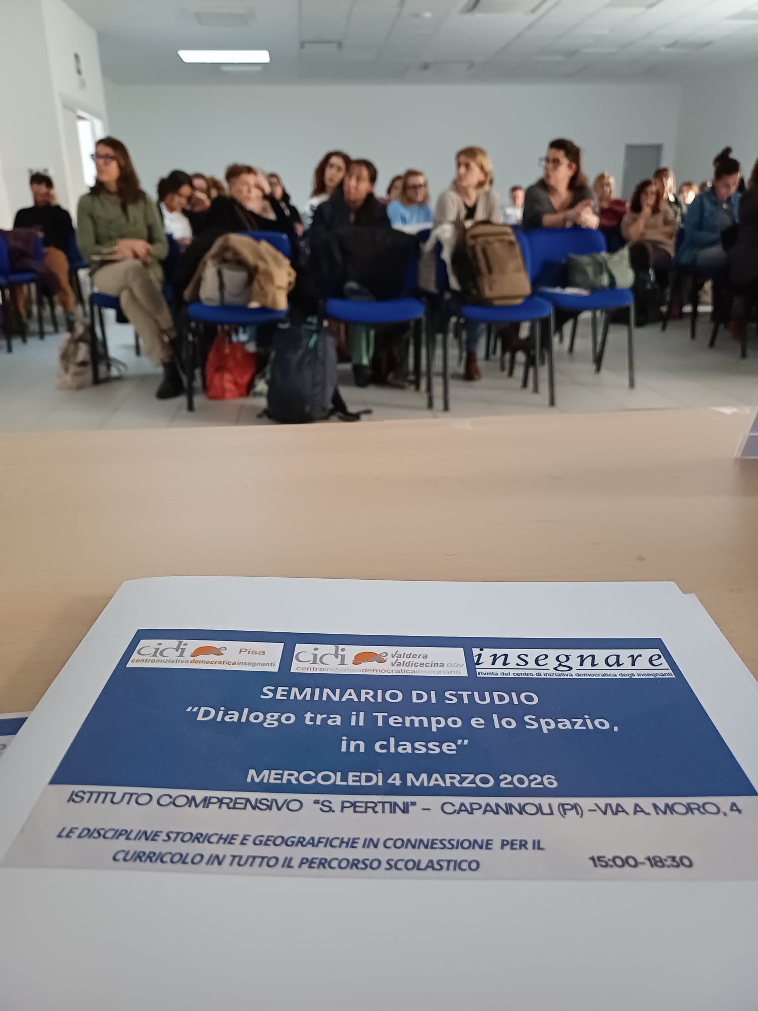 Mercoledì 4 marzo 2026 si è tenuto il Seminario di Studio “Dialogo tra il Tempo e lo Spazio, in classe”, organizzato dal CIDI presso l’Istituto Comprensivo “S. Pertini” di Capannoli (PI).